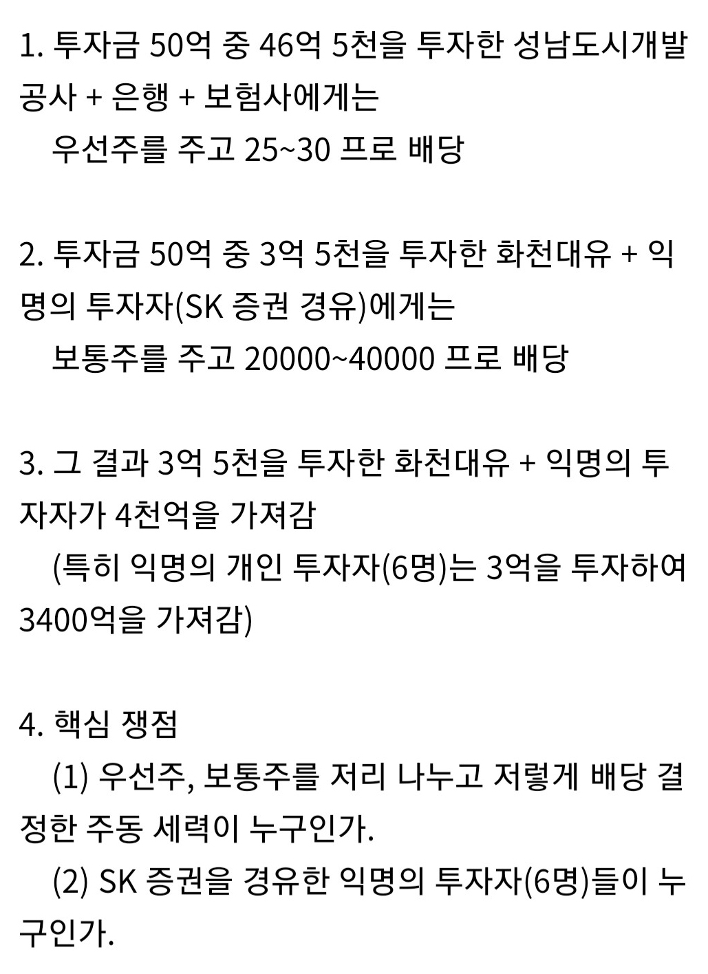 이익금의 상당액이 특정 개인이 지분을 100% 소유한 회사인 화천대유에 돌아간 것이